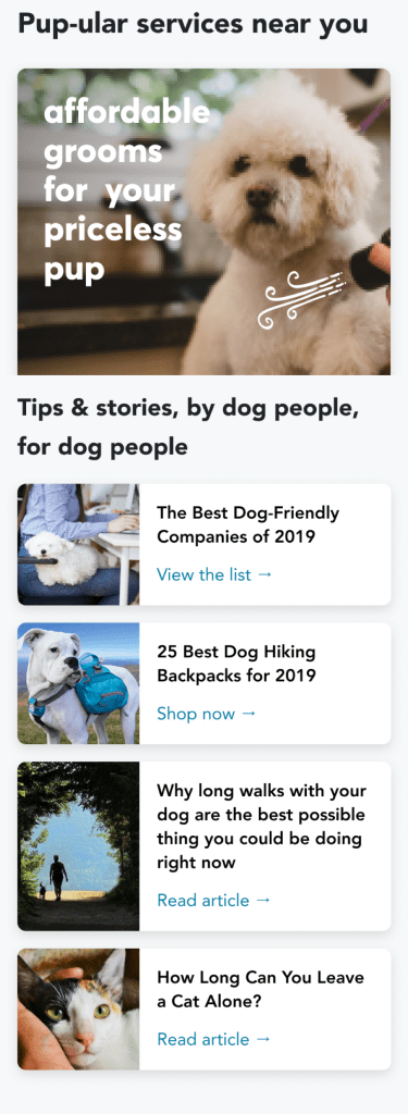 Including useful pet care information showed visitors that we were more than just a marketplace, we were all-inclusive experts on pets.