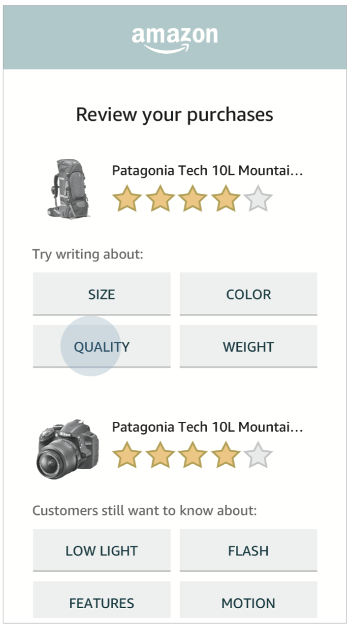 07 / Modernize the look and feel of the review creation process to match the rest of the Amazon experience and increase customer trust in the platform.